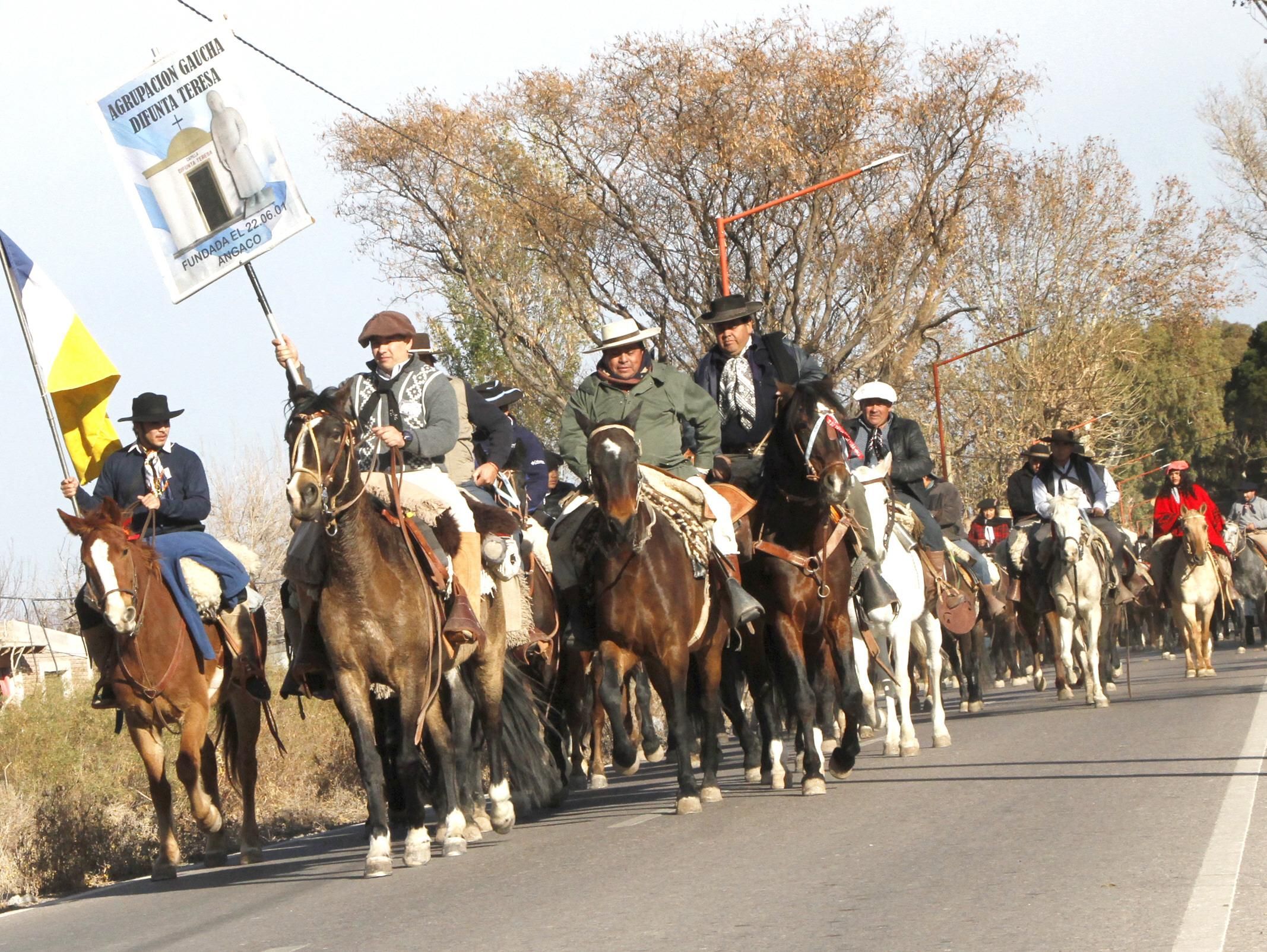 Desde las 8, los gauchos comenzaron a concentrarse en el Barrio Presidente Perón, en el distrito de Las Tapias, lugar desde donde parte tradicionalmente esta cabalgata. Y desde que llegaron comenzaron los abrazos y palmadas en la espalda para expresar la alegría de compartir un año más esta demostración de fe.
