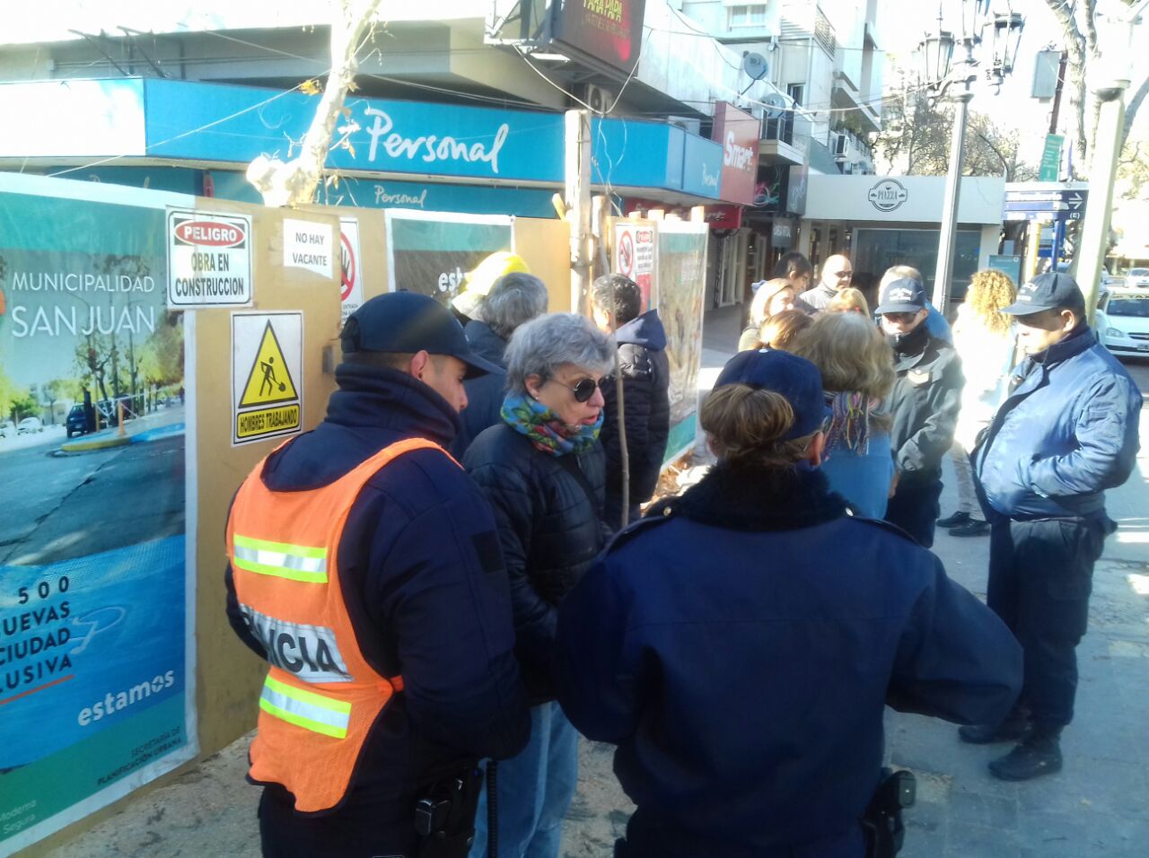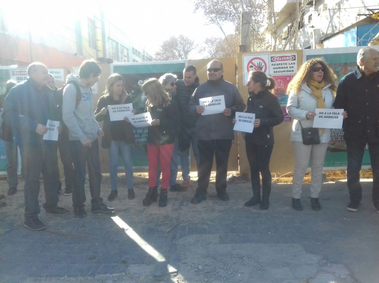Como estaba previsto, en la mañana de este lunes, un grupo de personas se reunió en la Peatonal para reclamar por al recambio de los 90 árboles del espacio, que según autoridades de la Municipalidad de la Capital están en mal estado y corren riesgo de caer.