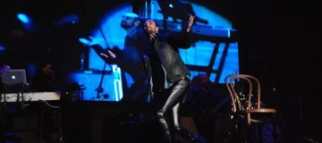 " Lo que soy” fue la primera canción del cantautor, quien respaldado por sus músicos saltó al frente con apenas un pantalón de cuero y un chaleco para capear el temporal. Ah, y una silla típica de los bares de antes que también tuvo su momento de gloria al final del recital.