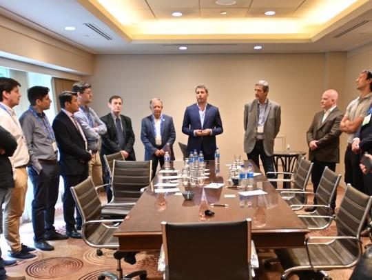La delegación local estuvo integrada, entre otros, por el secretario de Relaciones Institucionales, Marcelo Fretes; el titular del Instituto de Exploraciones y Explotaciones Mineras (IPEEM), Eduardo Machuca; la gerenta general de Banco San Juan, Silvina Bellantig; la especialista en minería e integrante de la Unidad Minera del Grupo Petersen, Laura Rópolo; el presidente de la Cámara Argentina de la Construcción Delegación San Juan, Julián Rins; el secretario general de la Asociación Sindical del Personal Jerárquico, Profesional y Técnico de la Actividad Minera Argentina (Asijemin), el titular de la Cámara de Empresas Perforadoras (Caperfo), Wbaldino Acosta; el presidente la Cámara de Servicios Mineros (Casemi), Daniel Cárcamo, junto a Alejandro Donna y Nicolás Goransky, integrantes la entidad.