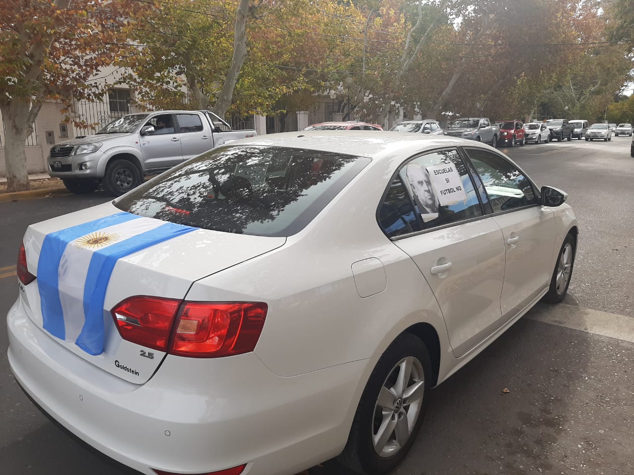 Fue estruendosa la manifestación porque lo hicieron con bocinazos. Mucho de las personas acompañaron con pancartas pidiendo la vuelta de los chicos a las aulas invocando frases y hasta la imagen del propio Domingo Faustino Sarmiento. Se vieron muchas banderas argentinas.