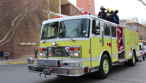 San Juan, 10 agosto.- Los Bomberos Voluntarios recorrieron el microcentro. Pero lo hicieron para mostrar su nueva adquisición a toda la comunidad. Una autobomba llegada recientemente de Estados Unidos.