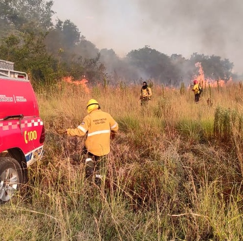 El personal de la provincia ayer actuó sobre dos frentes de fuego importantes, uno sobre Ruta Provincial 5, kilómetro 70 y otro en la misma ruta, kilómetro 95, en la zona de San Luis del Palmar y cerca del Parque Iberá. Según se informó, siguen trabajando en coordinacion con autoridades correntinas.