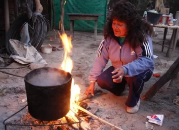 Lidia Icazati se levanta temprano. Su objetivo es prender el fuego para que su hija entre en calor antes y durante su viaje a la escuela. Es que la chica se traslada en bicicleta y su mamá le prepara una lata con brasas que coloca en el manubrio para que mantenga las manos calientes. "Acá tenemos casas humildes y estamos lejos de las comodidades de la ciudad", dice la mujer cuya vivienda de cañas también está en Las Chacritas. Y agrega que "con mi marido queremos comprar o hacer adobe para armar una casa mejor, pero con la pensión no nos alcanza". Lidia cuenta que durante la noche pasan mucho frío. Por eso, arman el fuego afuera y llevan las brasas adentro para que el ambiente se caliente un poco. En esas condiciones, las mejores aliadas son las frazadas. "El año pasado juntamos algo de plata y decidimos gastarla en frazadas. Gracias a eso estamos pasando mejor este invierno", dice Lidia mientras mantiene el fuego encendido.