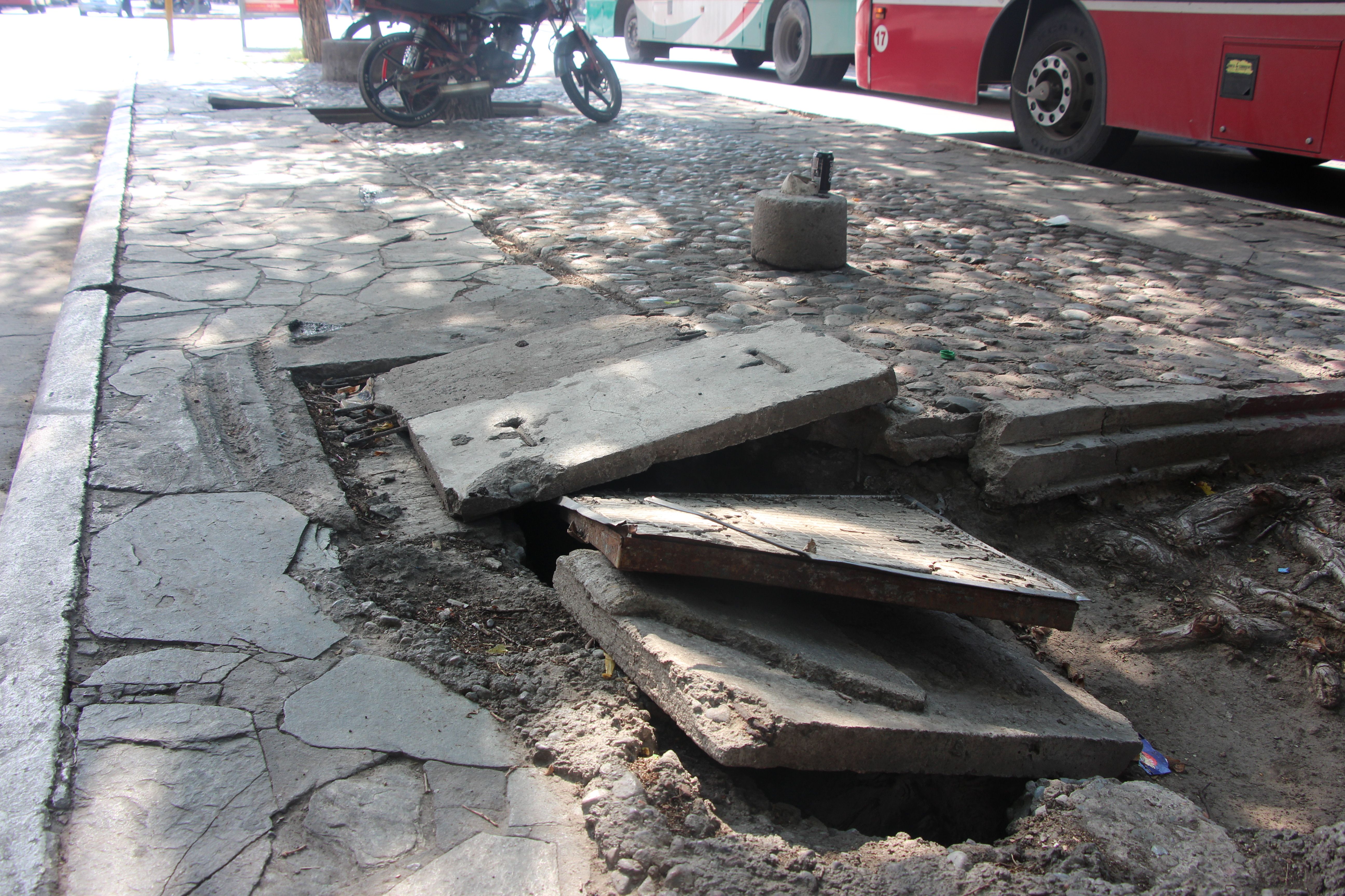 Las tapas de las acequias están rotas.