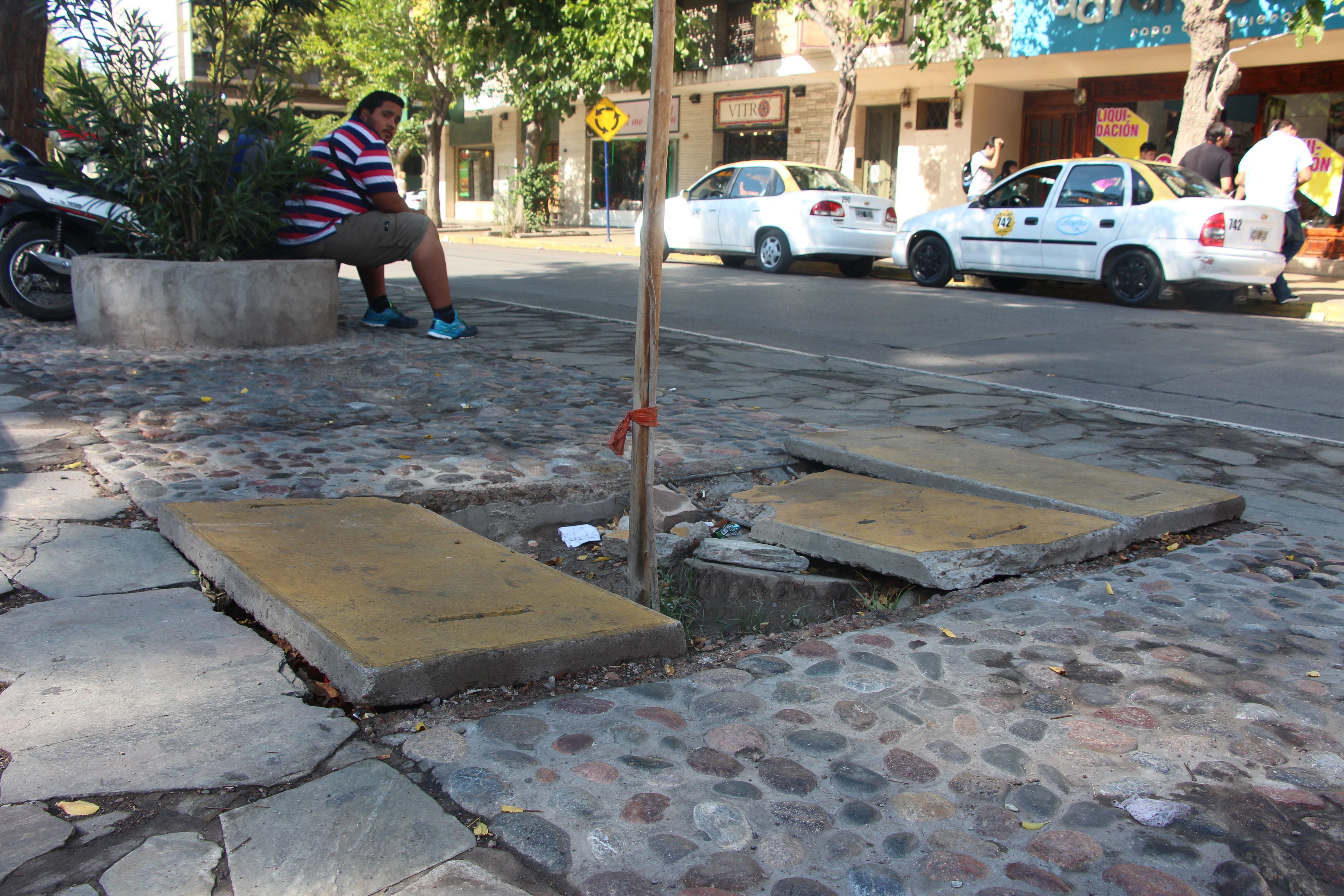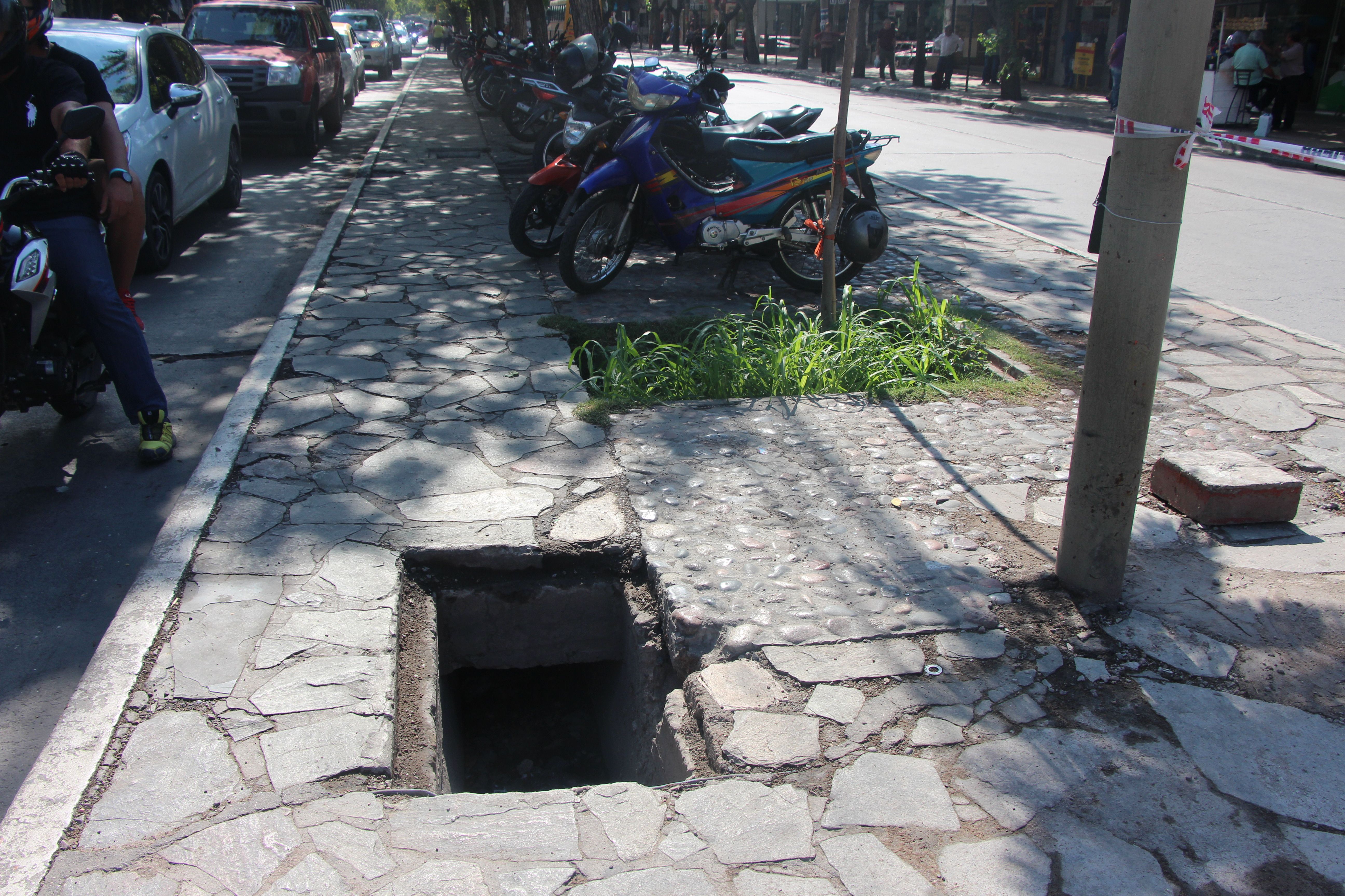 Las cunetas no tienen tapas, lo que representa un verdadero peligro para quienes caminan por allí, se sientan en los bancos ubicados en el medio o dejan sus motos o bicicletas estacionadas.