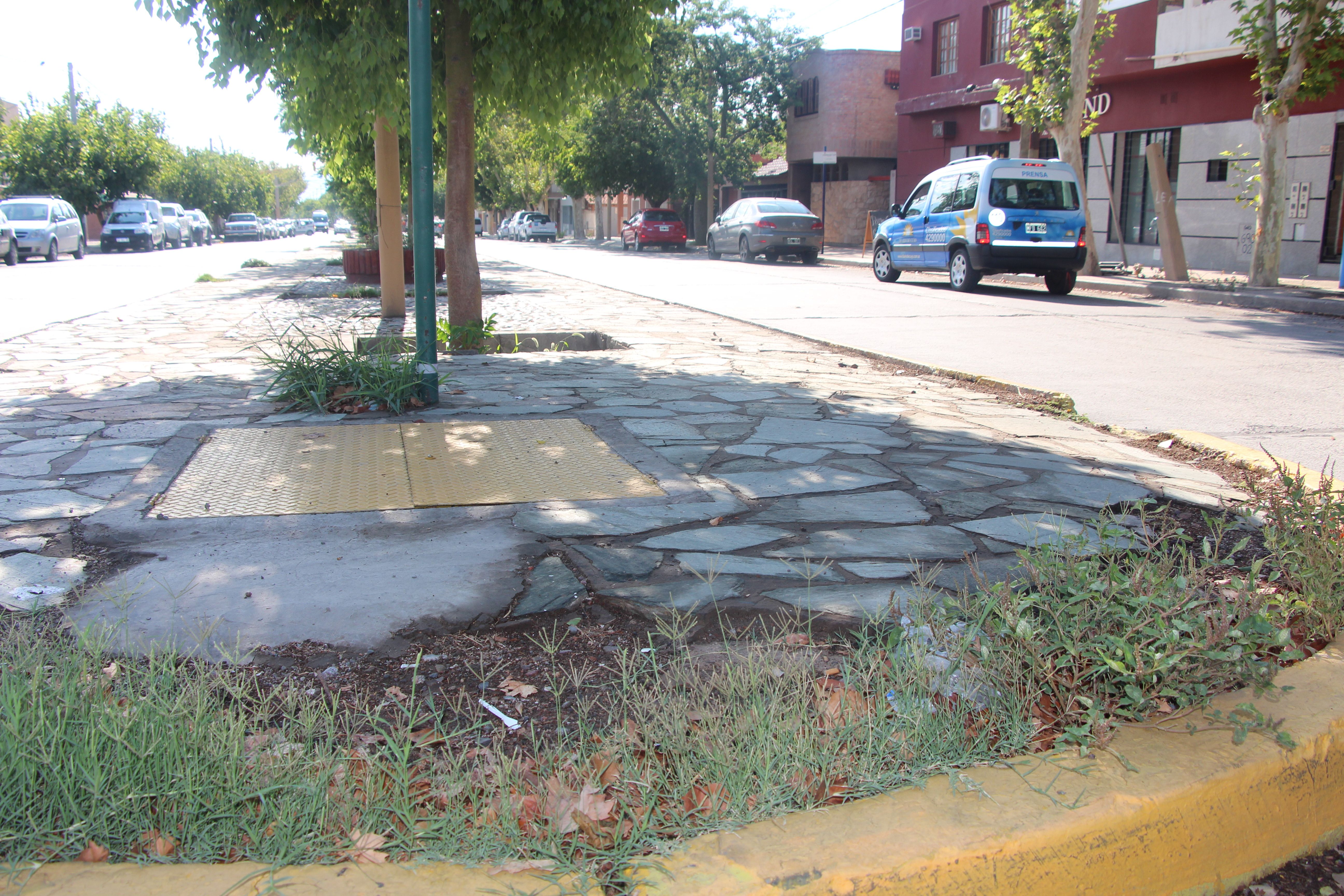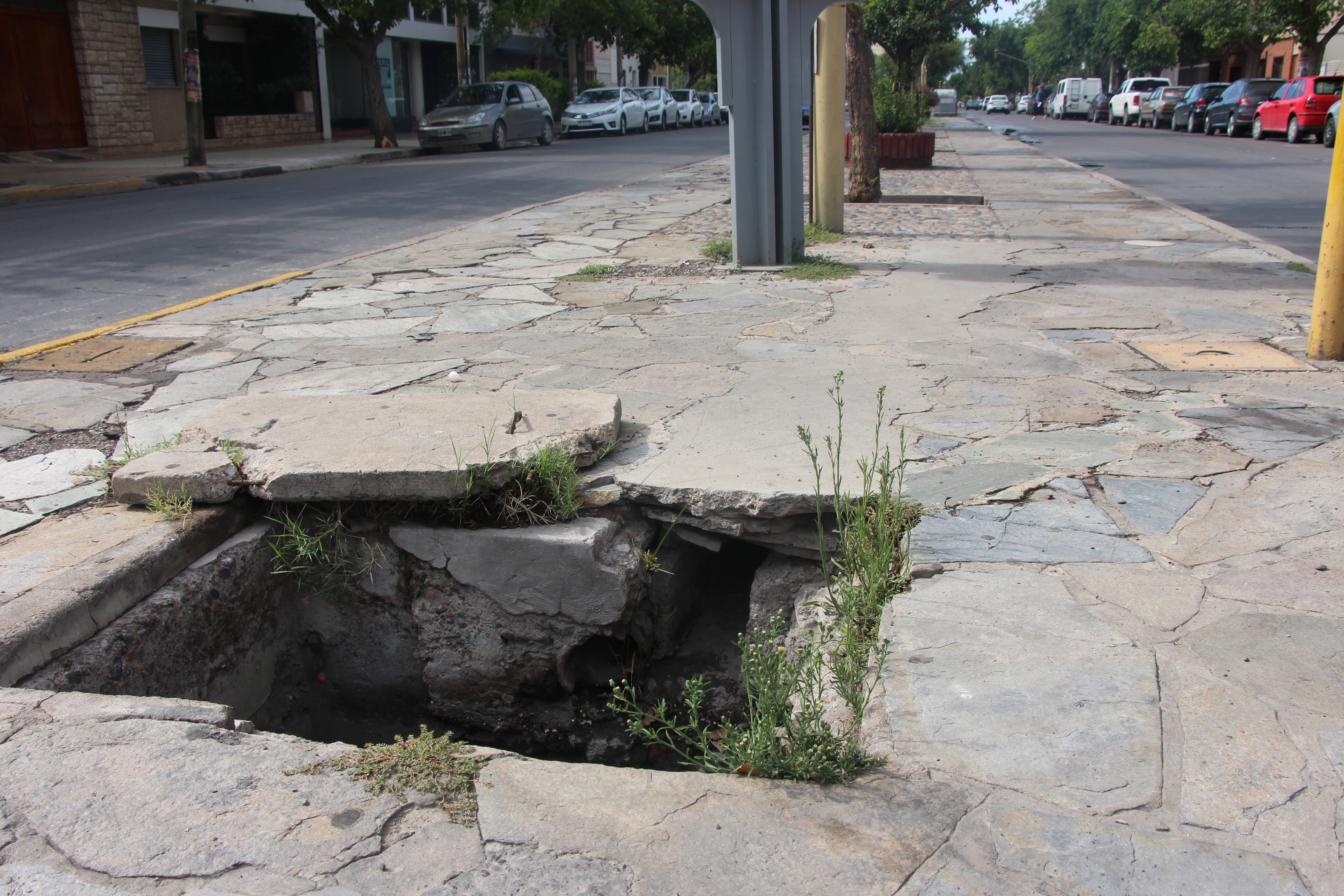 Además de canteros rotos, sin plantas y el pasto desprolijo en varios sectores, en todos se puede observar la falta de tapas de acequias, roturas en los veredines y los cordones y pozos de distintos tamaños que representan un peligro para los transeúntes.