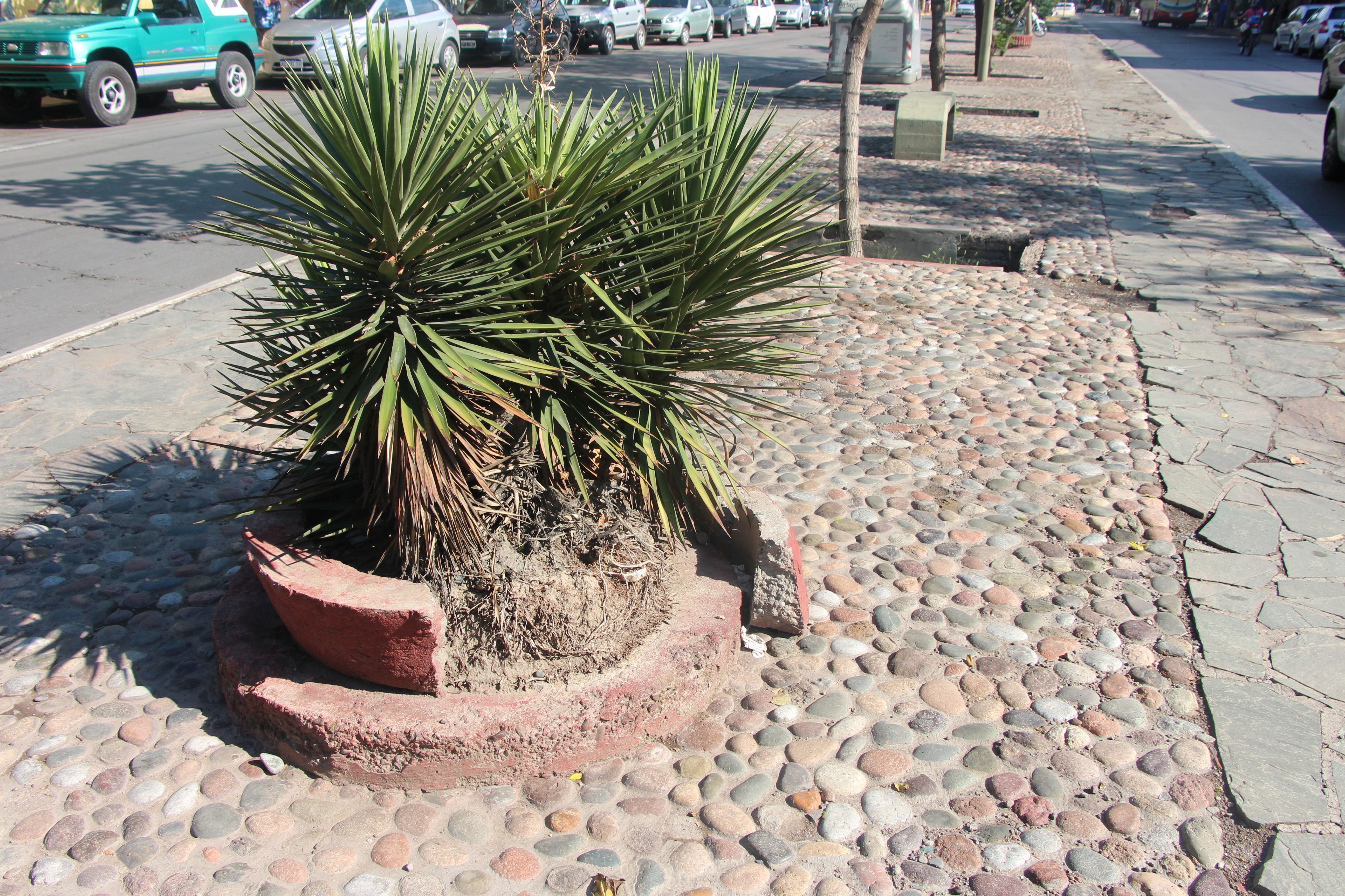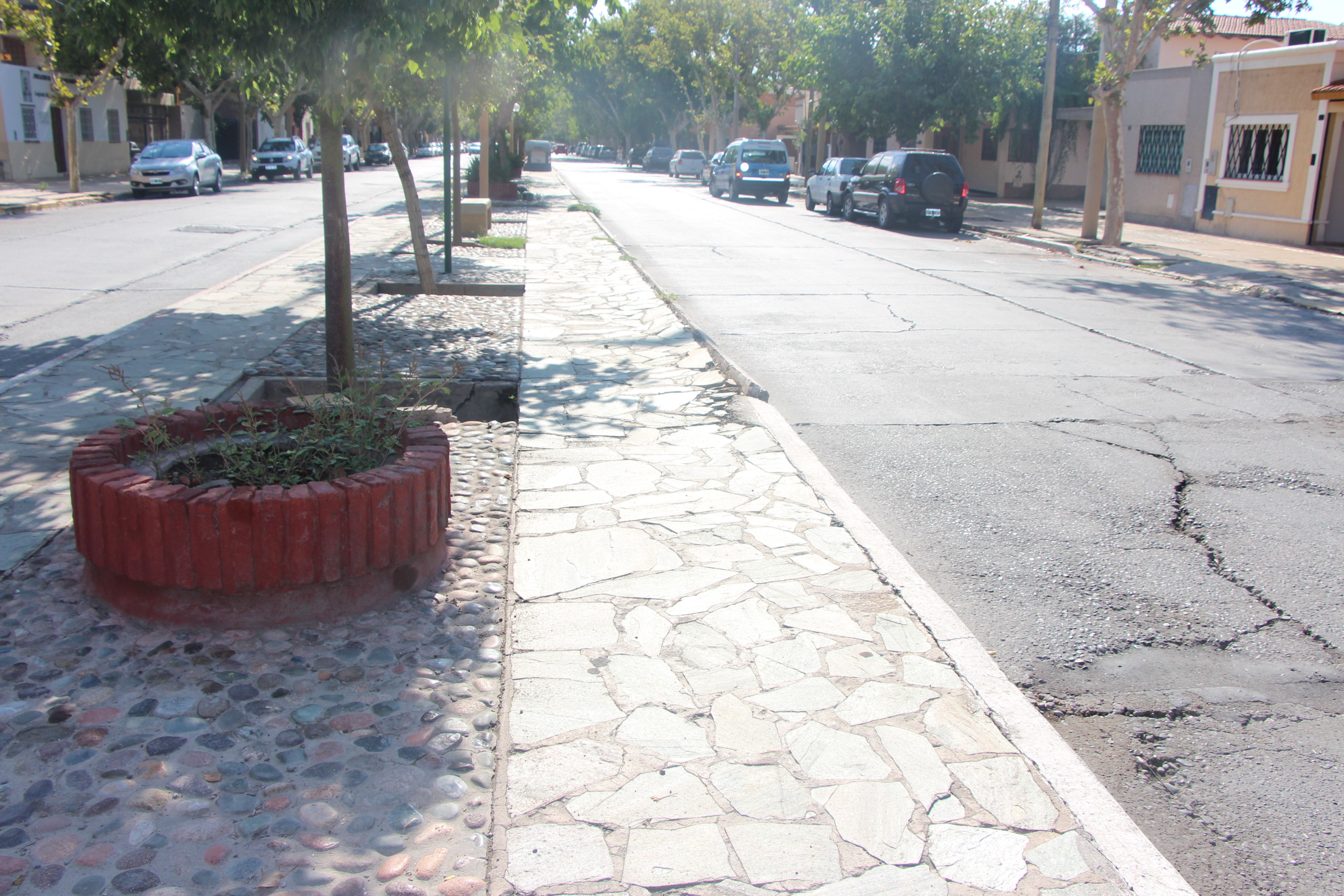Tanto los canteros como las veredas están rotos y en mal estado.