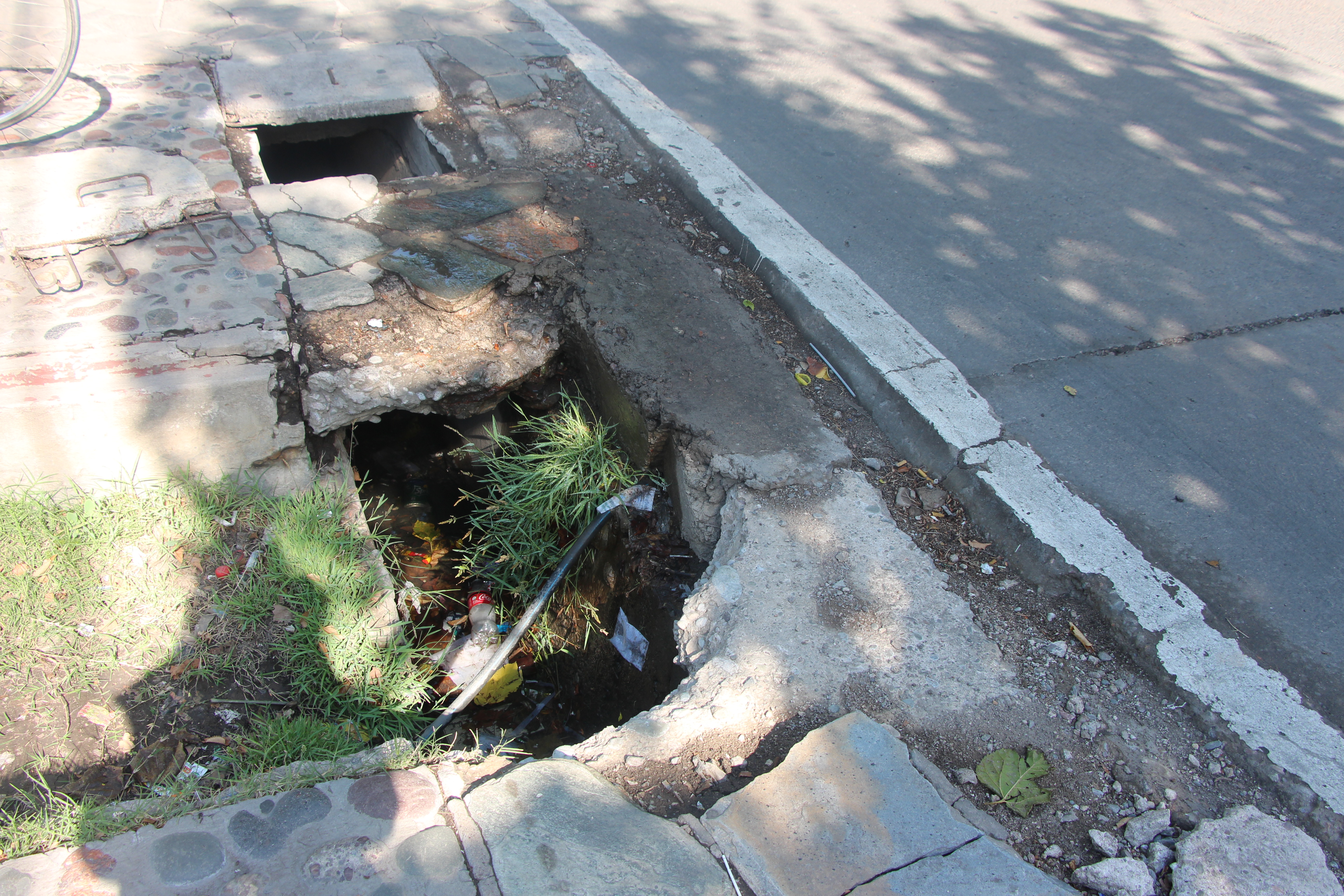 Se puede advertir tapas de las cunetas rotas y levantadas, además de pozos en el veredín.