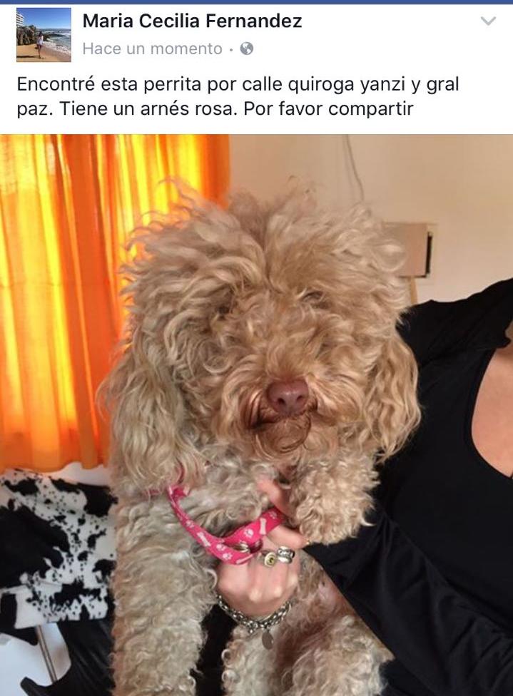 Se busca al dueño de una perrita que encontraron en General Paz y Quiroga Yanzi, Capital. ¡Mirá la publicación!