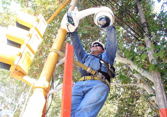 Ayer, en la esquina de Santa Fe y General Acha, sobre el pilar de un semáforo, tres hombres colocaban una de las flamantes cámaras de seguridad que permitirán a la policía localizar los delitos y conflictos callejeros. Los aparatos son de color blanco y tienen un aspecto similar al de una lámpara de alumbrado público. Aunque, en lugar de un foco, tienen una cámara recubierta por un plafón de color negro que es resistentes a los golpes.