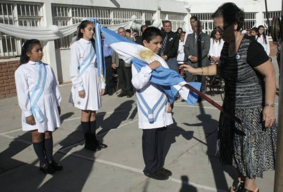 Los alumnos de la Escuela Estanislao Soler, de Chimbas, realizaron el cambio de su Bandera de Ceremonias. Lo hicieron en el acto por los 30 años del inicio de la Guerra de Malvinas. Justamente, la bandera nueva fue donada por un grupo de ex combatientes del Sur del país, que visitó la escuela.