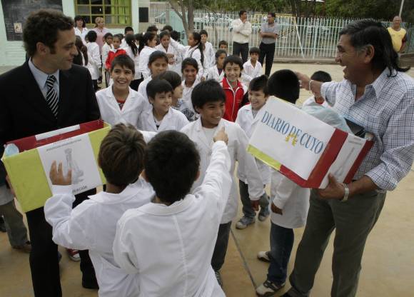 Los niños aguardaban en fila, en el patio. Y ni bien vieron la llegada de las carpetas, cuadernos y lápices comenzaron a sonreír. Quienes llevaban los regalos eran los integrantes de la Agrupación Virgen de Fátima, quienes consiguieron los útiles escolares realizando actividades auspiciadas por DIARIO DE CUYO, en las que pidieron colaboración con donaciones para 3 escuelas de Chimbas y 1 de San Martín.