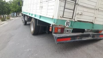Este lunes al mediodía un camión de una empresa familiar, del rubro de distribución, comenzó a hundirse en el asfalto inmediatamente luego de ser estacionado. La razón es que hay caños de agua rotos que hicieron que la calle ceda por el peso y el propietario del vehículo aseguró que iba a darse vuelta en cualquier momento.