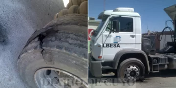 En cuanto el camión entró en contacto con los cables, se produjo una descarga eléctrica. Tan fuerte que al Volkswagen le explotaron las ruedas, dejando marcas de quemaduras en el pavimento. Las personas que se encontraban cerca salieron despedidas, mientras que el chofer, del que no trascendió la identidad, tuvo que ser trasladado al servicio de Urgencia del Hospital Rawson.