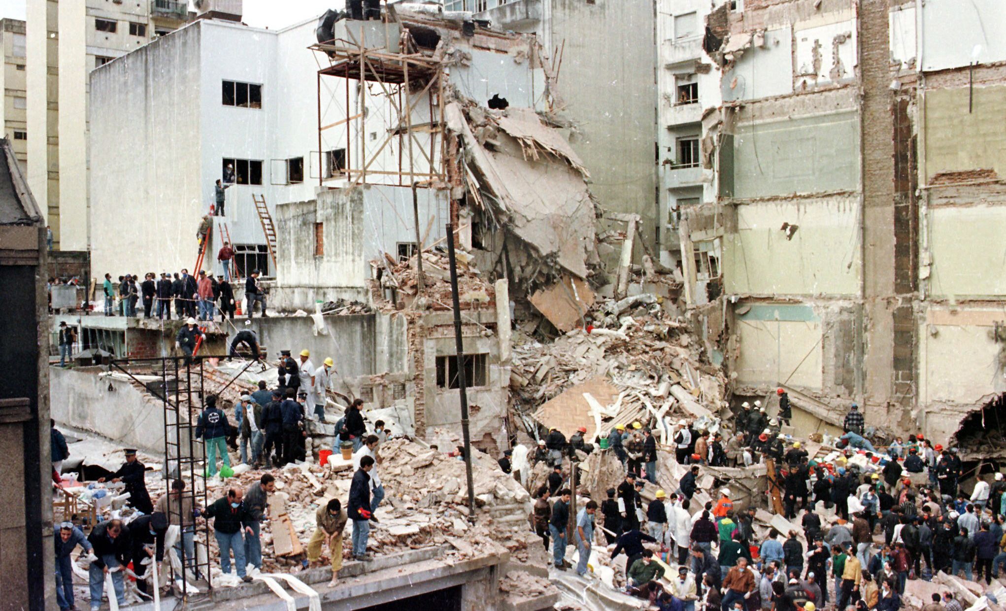 El 18 de julio, a las 9.53, se produjo un ataque terrorista contra el edificio donde funcionaba la Asociación Mutual Israelita Argentina (AMIA), en Buenos Aires (foto). Usaron un coche bomba. Fue uno de los mayores ataques terroristas en la Argentina con un saldo de 85 personas fallecidas y 300 heridas.