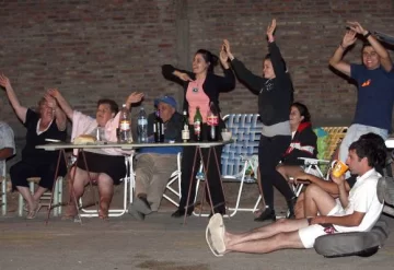 Los vendedores de juguetes luminosos, muy solicitados por los chicos, recorrían las mesas ubicadas en la explanada del complejo, mientras gran cantidad de niños, haciendo caso omiso de la hora y del aire frío que empezó a soplar, hacían elevar sus hélices a lo alto, tomando desprevenido a más de uno cuando bajaban al suelo. Entre mates, pizzas y chorizos asados a las brasas, las familias de diferentes departamentos aprovecharon la fresca noche otoñal para asistir a una peña como las de antes, con los cerros como caja de resonancia.