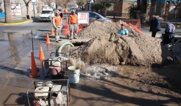 Durante la mañana de ayer un caño de agua potable se daño en la calle Juan Jufré en Concepción. Debido a esta rotura la calle estuvo inundada durante toda la mañana. Los obreros de OSSE interrumpieron el tránsito para arreglar la cañería.