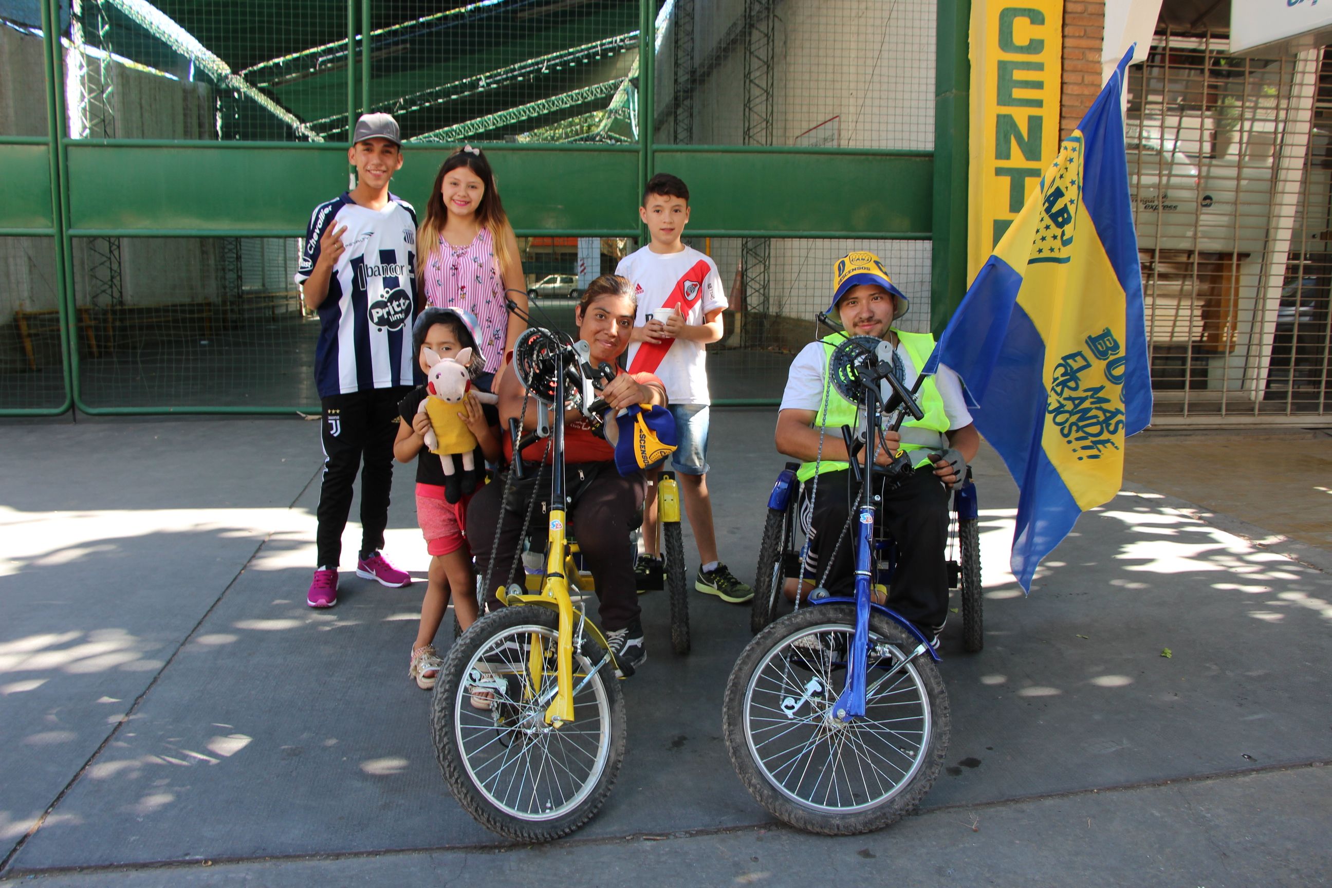Karina y Mayco llegaron en bicicleta mientras que su familia arribó en colectivo para acompañarlos en la salida.