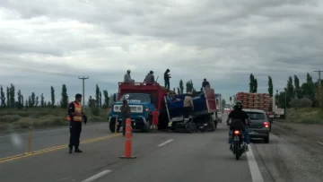 Según informaron, el vehículo de gran porte sufrió la rotura de un palier en plena calzada de la arteria nacional y su conductor no pudo moverlo. Por eso es que tuvo que pedir ayuda y llegó otro camión que se puso a la par para poder extraerle los cientos de kilos de uva que transportaba.