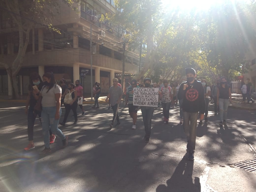 Pidiendo viviendas y alimentos, un centenar de personas representantes de Chimbas se manifestaron esta mañana frente a la subsecretaría de Trabajo, reclamando empleos, viviendas y alimento.