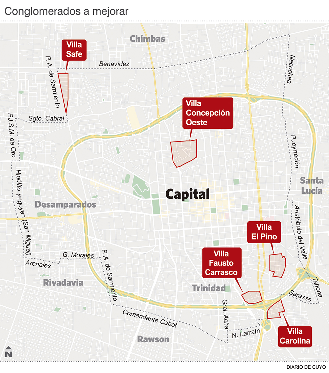 "El compromiso es ir haciendo los lugares donde hemos crecido un poquito mejor todos los días. Hoy hay plazas que eran baldíos. Tenemos un plan claro de recuperación y mejoramiento de los barrios en todos los distritos por igual, y estamos haciendo lo que por años han reclamado los vecinos", dijo el intendente de Capital, Emilio Baistrocchi, para explicar los alcances de esta obra. El funcionario agregó que los trabajos se centrarán en las villas Carolina (296 familias), El Pino (220 familias) y Fausto Carrasco (108 familias),Trinidad; en la Villa Concepción Oeste (420 familias), en Concepción; y en la Villa Safe (51 familias), en Desamparados. Y que contemplarán principalmente la construcción de veredas, de cordón zapata, rampas peatonales y acequias impermeabilizadas, ya que son las obras más retrasadas en estos vecindarios.