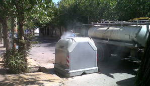 Primero intentaron apagar el siniestro con baldes de agua pero no fue posible por la cantidad de basura que el contenedor tenía en su interior. No fue hasta que un camión de la Municipalidad de la Capital, que se prestaba a regar la plaza Hipólito Irigoyen, que llegó hasta el lugar para ayudar a los uniformados a sofocar el fuego.