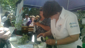 San Juan, 19 de octubre.- La Municipalidad de la Ciudad de San Juan, en conjunto con el Programa Prohuerta del INTA llevó adelante esta mañana en lanzamiento de la campaña “Ecohuertas en Capital”, entregando plantines de diversas especies de verduras, aromáticas y ornamentales, en el cruce de las peatonales.