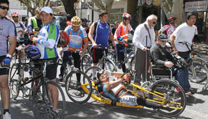 San Juan, 9 de octubre.- El Ministerio de Desarrollo Humano y Promoción Social realizó esta siesta la primer bicicleteada inclusiva, en el marco del mes internacional del Bastón Blanco.