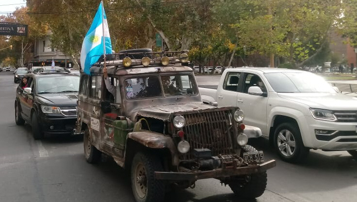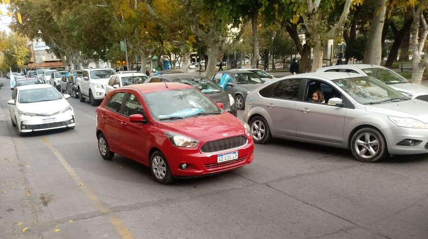 Fueron más de doscientos vehículos los que participaron de la marcha que se inició en Casa de Gobierno y avanzó por Avenida Libertador y luego calle Mendoza hacia el sur, para culminar alrededor de la Plaza 25 de Mayo.