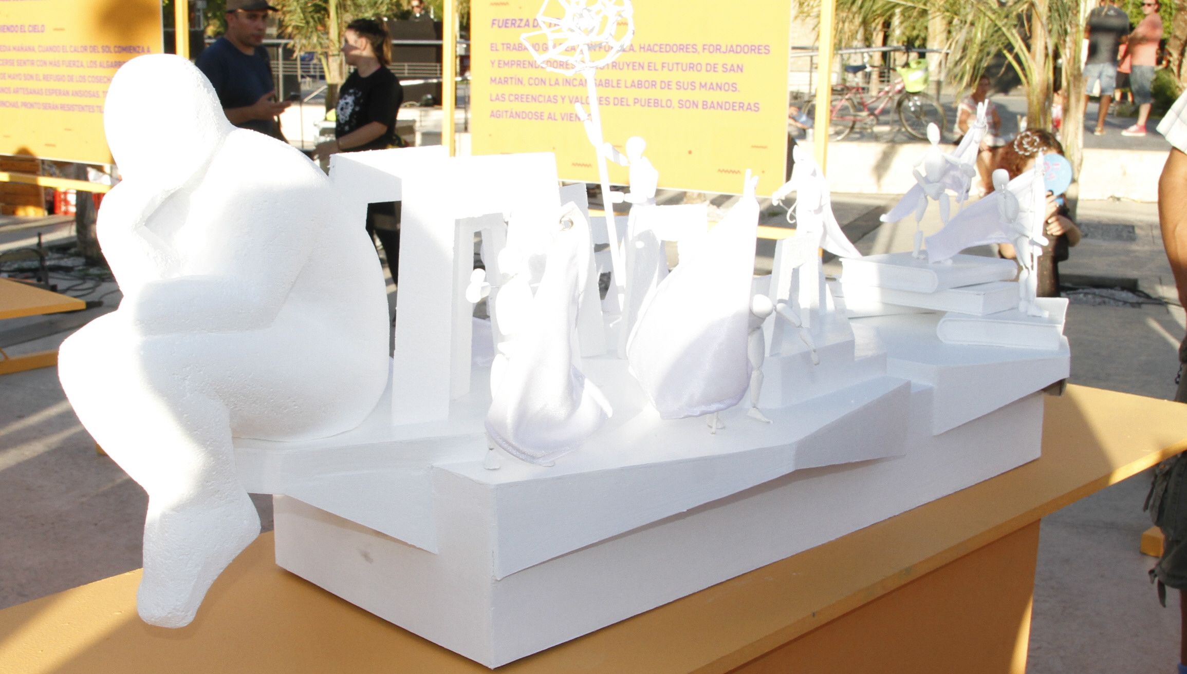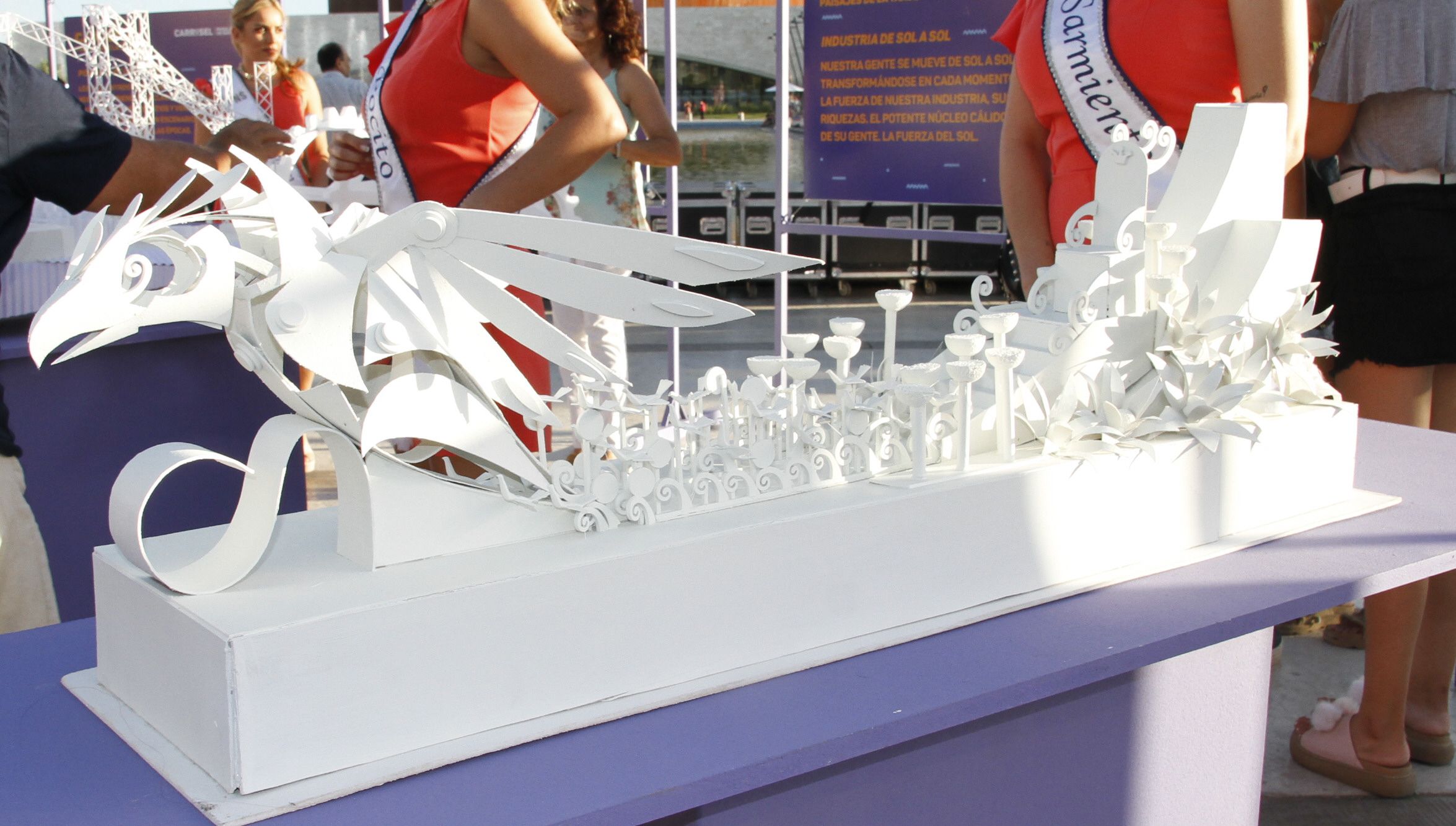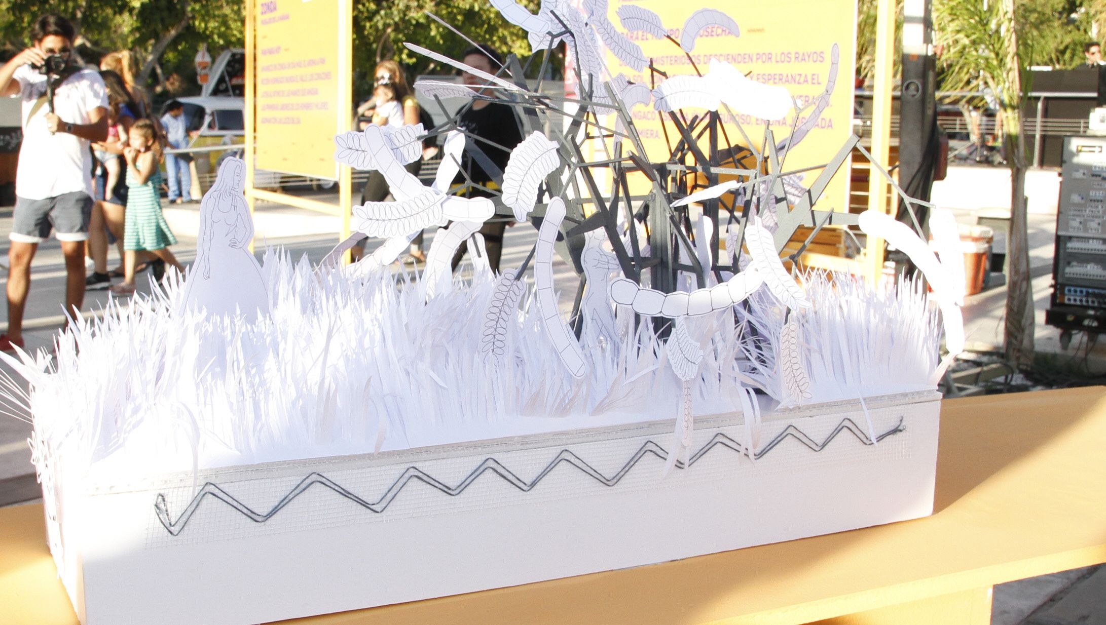 Representará la arquitectura de la ciudad y formará parte de los paisajes de la siesta. El carro mostrará sus edificios, la plaza, la fuente y su gente, que son parte de un espejismo, donde lo real y lo fantástico desdibujan sus límites.