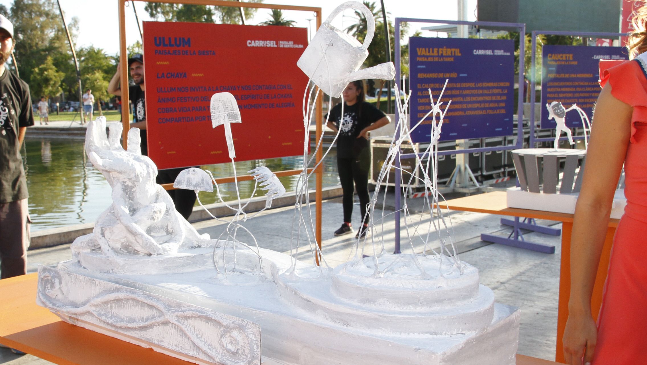 Representará la cultura originaria y formará parte de los paisajes de la tarde. La maqueta muestra cómo, en Sarmiento, los últimos rayos del Sol iluminan la laguna de Guanacache y su fauna.