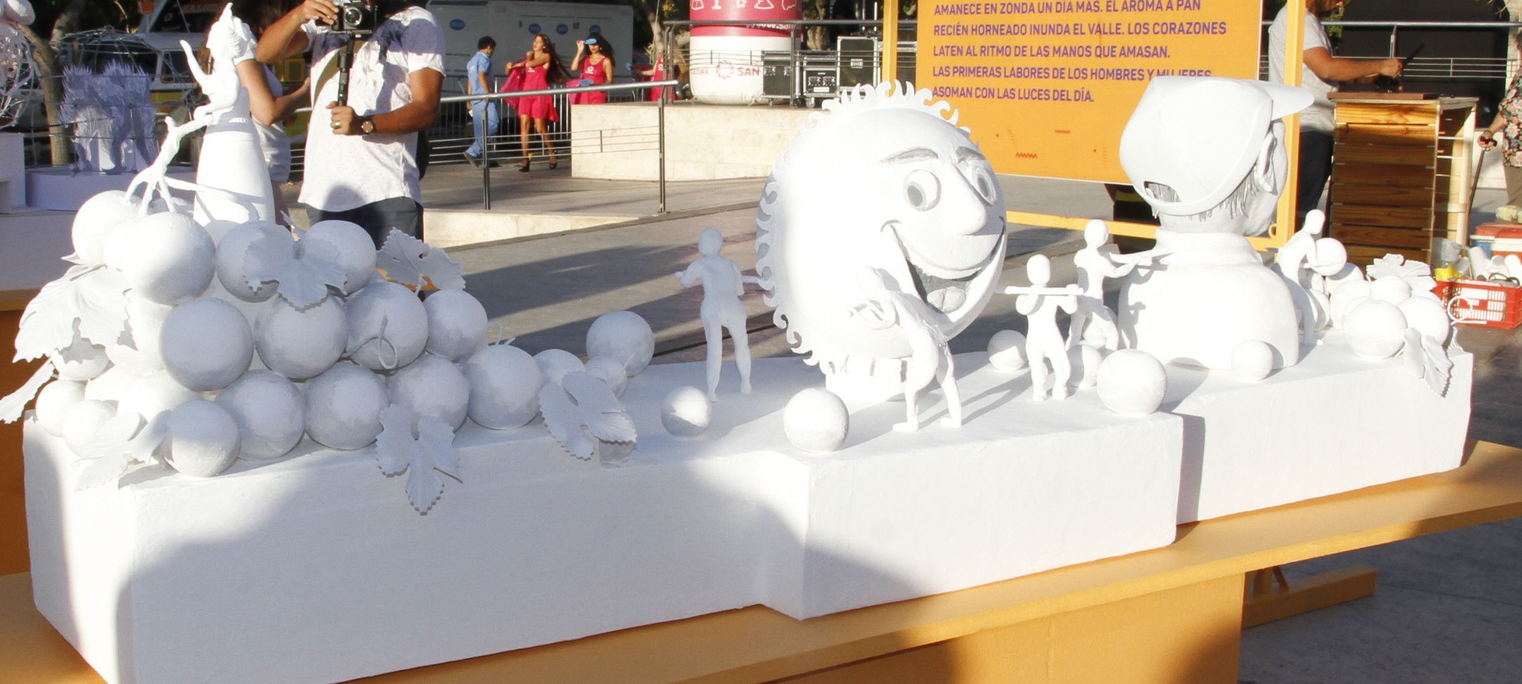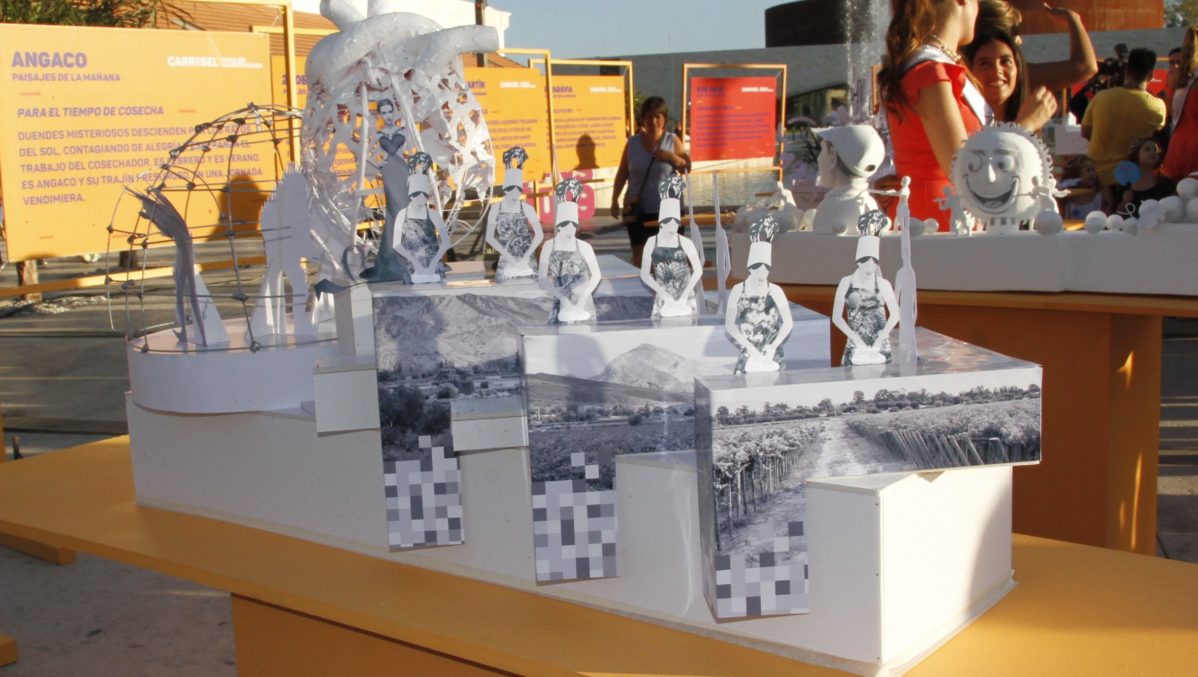 Representarán la vendimia y formará parte de los paisajes de la mañana. Duendes misteriosos descienden por los rayos del Sol, contagiando alegría y esperanza a los cosechador. Mostrarán a Angaco y su trajín en una calurosa jornada vendimiera.