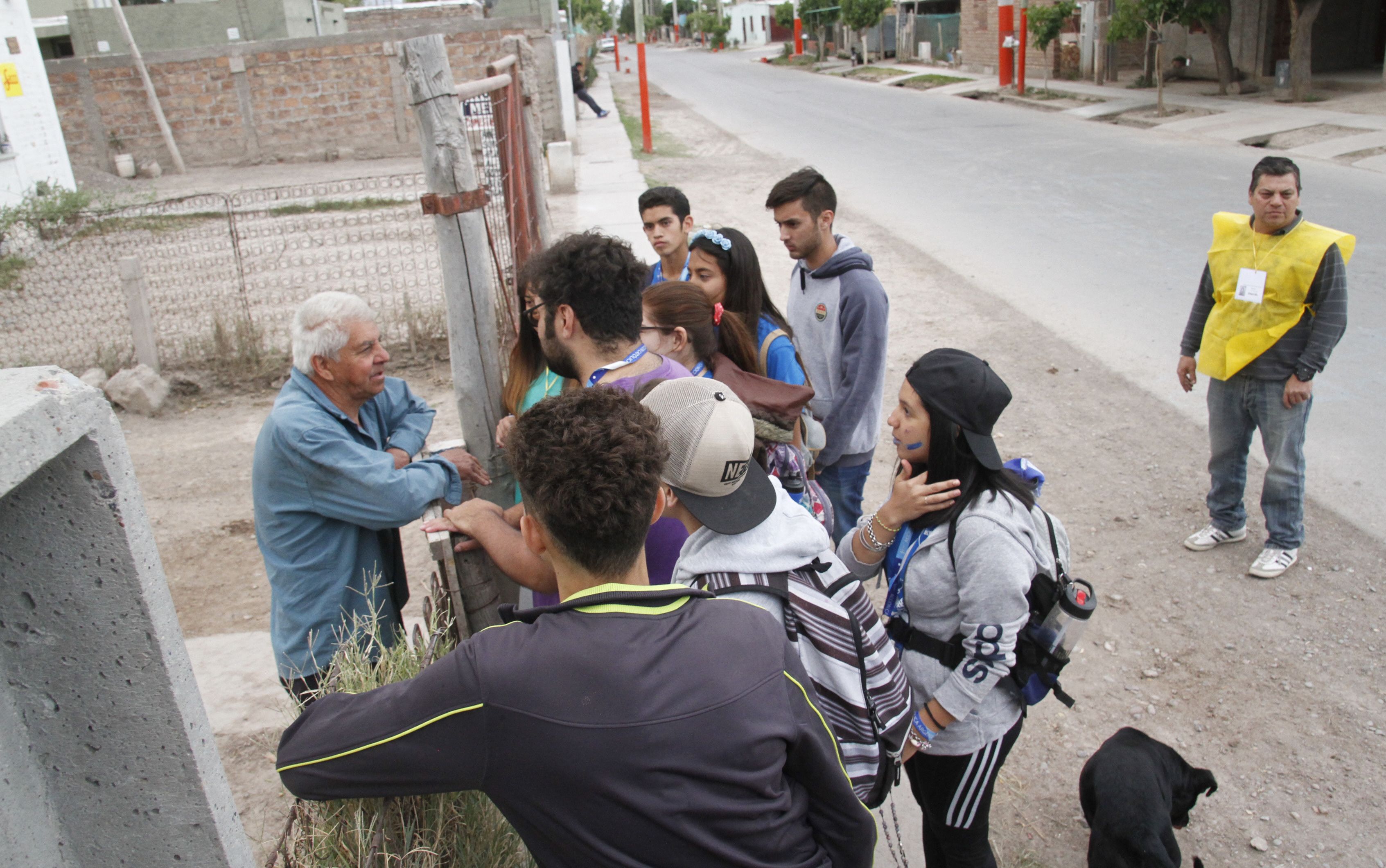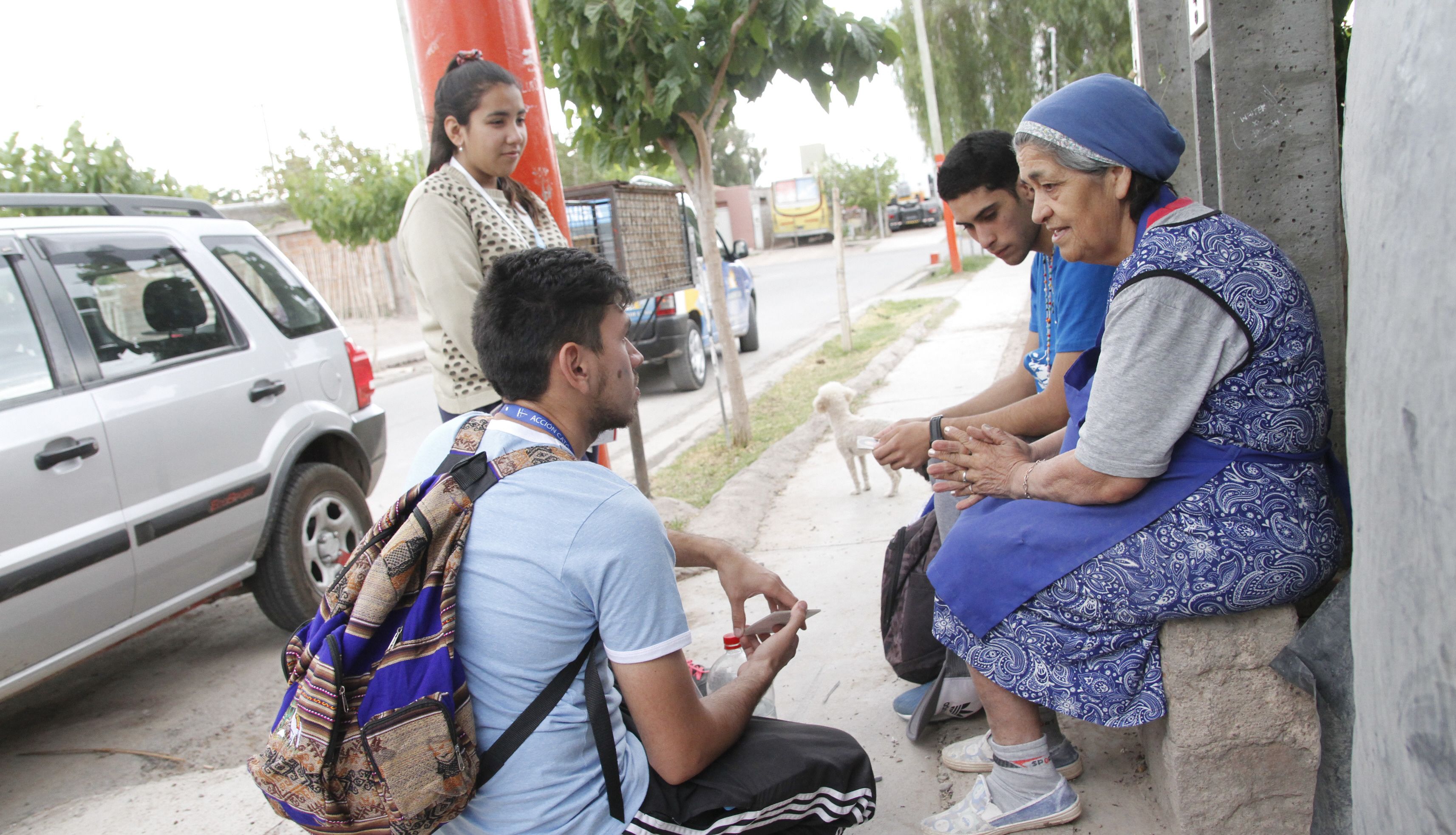 "Ya visitamos varias casas. En algunas no nos atendieron, pero en otras nos recibieron muy bien. Ahora estamos escuchando a una señora que nos está contando una experiencia que tuvo con Jesús, debido a un problema de salud", dijo Abi Ruiz, que llegó desde San Luis y que junto a tres chicos más, de diferentes provincias porque salieron mezclados, hasta se sentaron en la vereda para escuchar el relato de la anciana.