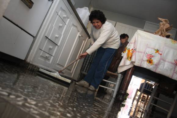 Casas inundadas desde la cuneta