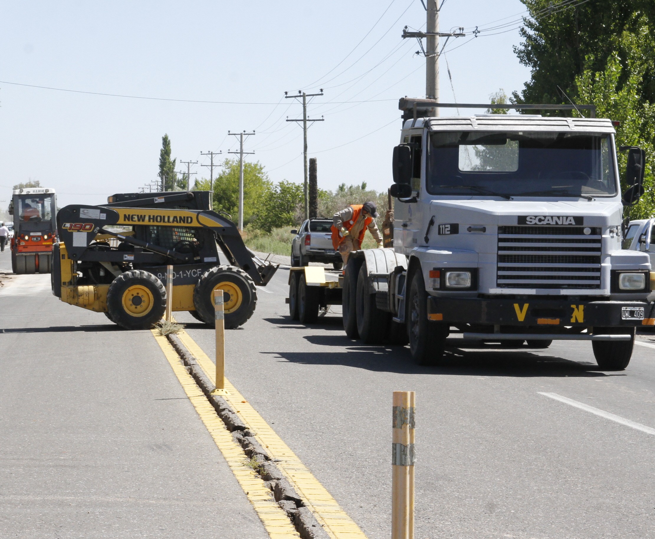 Personal de Vialidad Nacional y Provincial trabajaba ayer en el rellenado de las grietas que se abrieron en las calzadas. En la Ruta 40 hay un desvío de 800 metros entre el kilómetro 3.434,43 y el 3.434,94. Para circular de norte a sur, hacerlo por la banquina oeste. De sur a norte, sobre la calzada también oeste.
