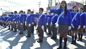 San Juan.- Durante la mañana de hoy, más de 1.700 chicos participaron de la Promesa de Lealtad a la Bandera, llevada a cabo en la Plaza de Chimbas. Se trata de alumnos de cuarto grado de distintas escuelas del departamento.