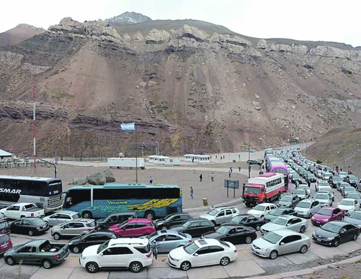 Colas interminables. El paso a Chile por Mendoza durante estos días se mostró abarrotado. Los vehículos particulares demoran menos que los colectivos en hacer el trámite de Aduana.