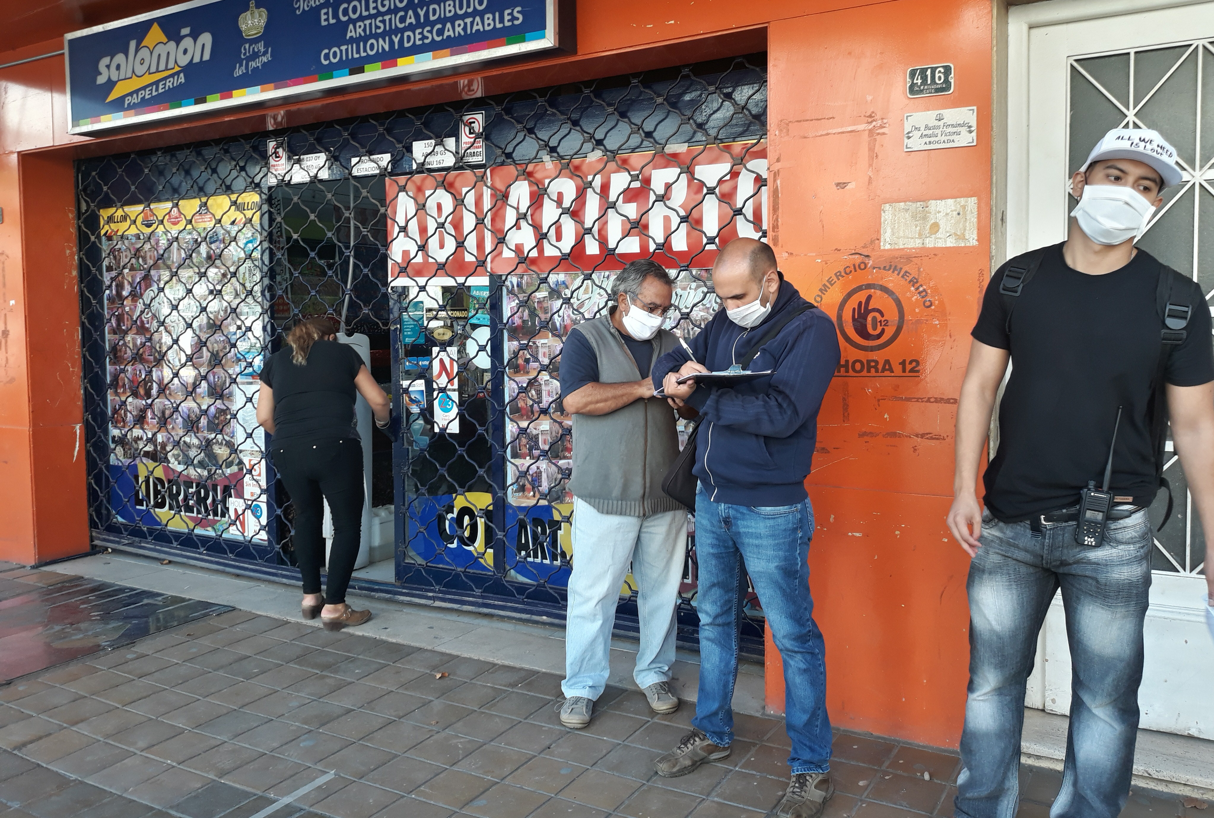 Un par de librerías, pertenecientes a los mismos dueños, fueron clausuradas ayer en forma preventiva y serán pasibles de sendas multas, por dejar entrar al público al local, en lugar de proceder al envío por delivery. También se le llamó la atención al público que formaba cola en la vereda por incumplir la cuarentena. Se trata de la librería Salomón, en calle Rivadavia, entre Jujuy y Aberastain; y una sucursal frente a la feria de la Capital.