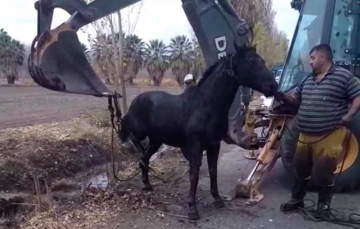 El caballo estaba tan enterrado en la greda que debieron usar hasta una retroexcavadora para salvarlo. Pero todo el trabajo dio sus frutos, ya que finalmente se encuentra a salvo.