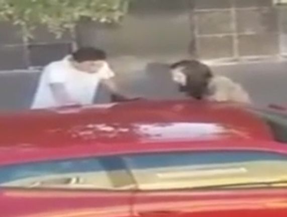 Según se pudo conocer, los infieles estaban en el auto rojo junto con un grupo de amigos del muchacho, cuando la novia oficial irrumpió gritando ante ellos -el vehículo estaba estacionado en calle Mariano Moreno, a escasos metro de una estación de servicios- y exigió que la amante saliera del auto: "Bajate c*liada".