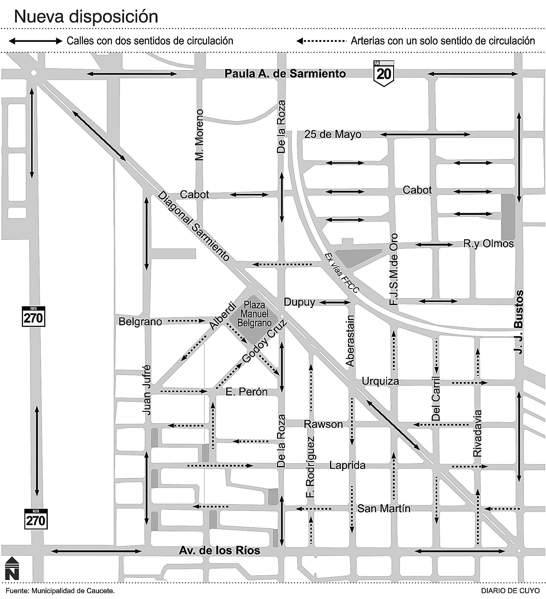 La demarcación de boxes arrancará dentro de un par de semanas, según los cálculos del funcionario, junto con la modificación del sentido de circulación de unas 50 cuadras dentro de la cuadrícula enmarcada entre las avenidas De los Ríos, Paula Albarracín de Sarmiento y Juan José Bustos, y la Ruta 270. "Actualmente, todas las arterias de esta zona son de doble sentido y eso complica mucho el tránsito. Con el nuevo plan de ordenamiento, al menos 50 cuadras van a pasar a tener un solo sentido de circulación para agilizar el tránsito", dijo el director de Tránsito.