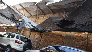 San Juan.- Durante la mañana de este martes, minutos antes de las 11, dos ladrillones cayeron de un edificio en construcción, rompieron la chapa de contención, una media sombra e impactaron contra una camioneta estacionada en la guardería lindante, destrozando su luneta. El hecho ocurrió en calles Mitre y Mendoza.