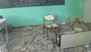 San Juan 23 de mayo.- El pasado lunes, el techo de una de las 10 aulas que la Escuela Dalmasio Vélez Sarsfield posee se cayó. El hecho provocó la reacción de los padres de los 180 alumnos que asisten al establecimiento y comenzaron las quejas. Las autoridades de la Dirección de Arquitectura se hicieron presentes y comenzaron a estudiar la estructura edilicia para ver las posibles soluciones. Lo cierto es que el problema es mayor, ya que hay dos aulas más con riesgo de caída de mampostería y los baños están fuera de servicio, provocando la toma del establecimiento por los padres, quienes esperan una respuesta concreta del Ministerio de Educación.