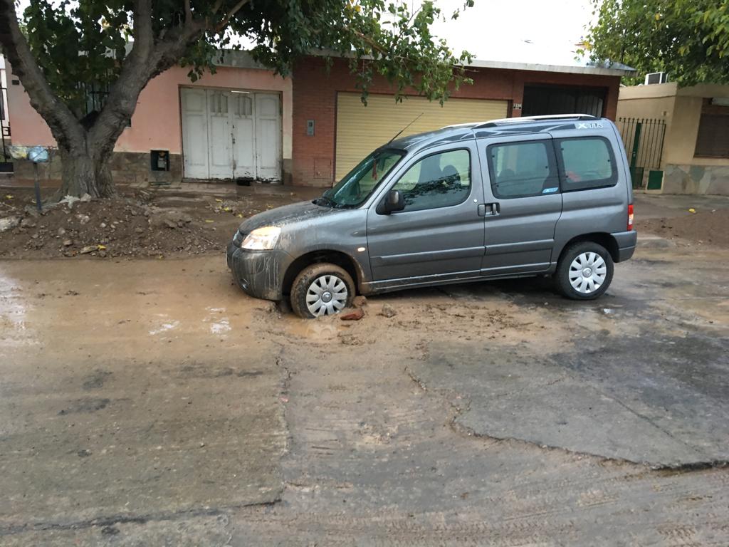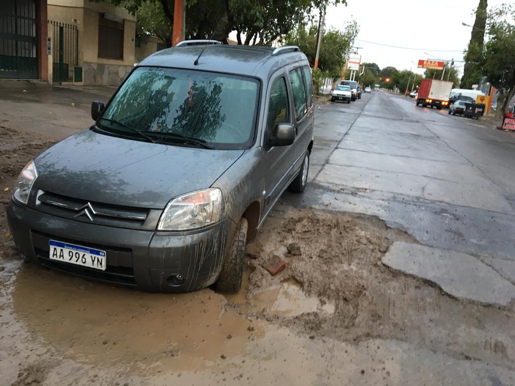 Esta mañana, alrededor de las 9, cedió el pavimento en una calle de Capital en un sector en el que habían hecho obras de cloacas y un utilitario quedó varado.