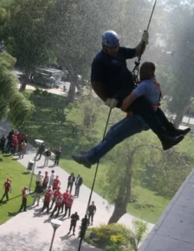 Pero, por otro lado, hubo muchos atenuantes que no existirían en un incendio de verdad: antes de que comenzara todo, la gente ya estaba avisada de cómo debía actuar, los ascensores ya estaban detenidos, la Libertador ya estaba cortada para los bomberos, ya estaba instalado el sistema de la camilla aérea, habían traído bomberos de Jáchal y Calingasta para poder completar los 90, y hasta las ventanas estaban previamente aseguradas con cuerdas para que no se cerraran durante los rescates.