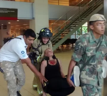 Con tirolesa y arneses, los bomberos y soldados del RIM 22 hicieron varias maniobras para poder bajar en camilla y desde el techo del edificio a los heridos. El primer rescate en altura se complicó un poco con el viento que hizo girar la camilla y el herido quedó colgando cabeza abajo. Pero su descenso culminó con éxito. Simularon trasladarlo al hospital en una de las ambulancias que intervino en el ejercicio, y ante el aplauso de la gente que siguió paso a paso la escena.