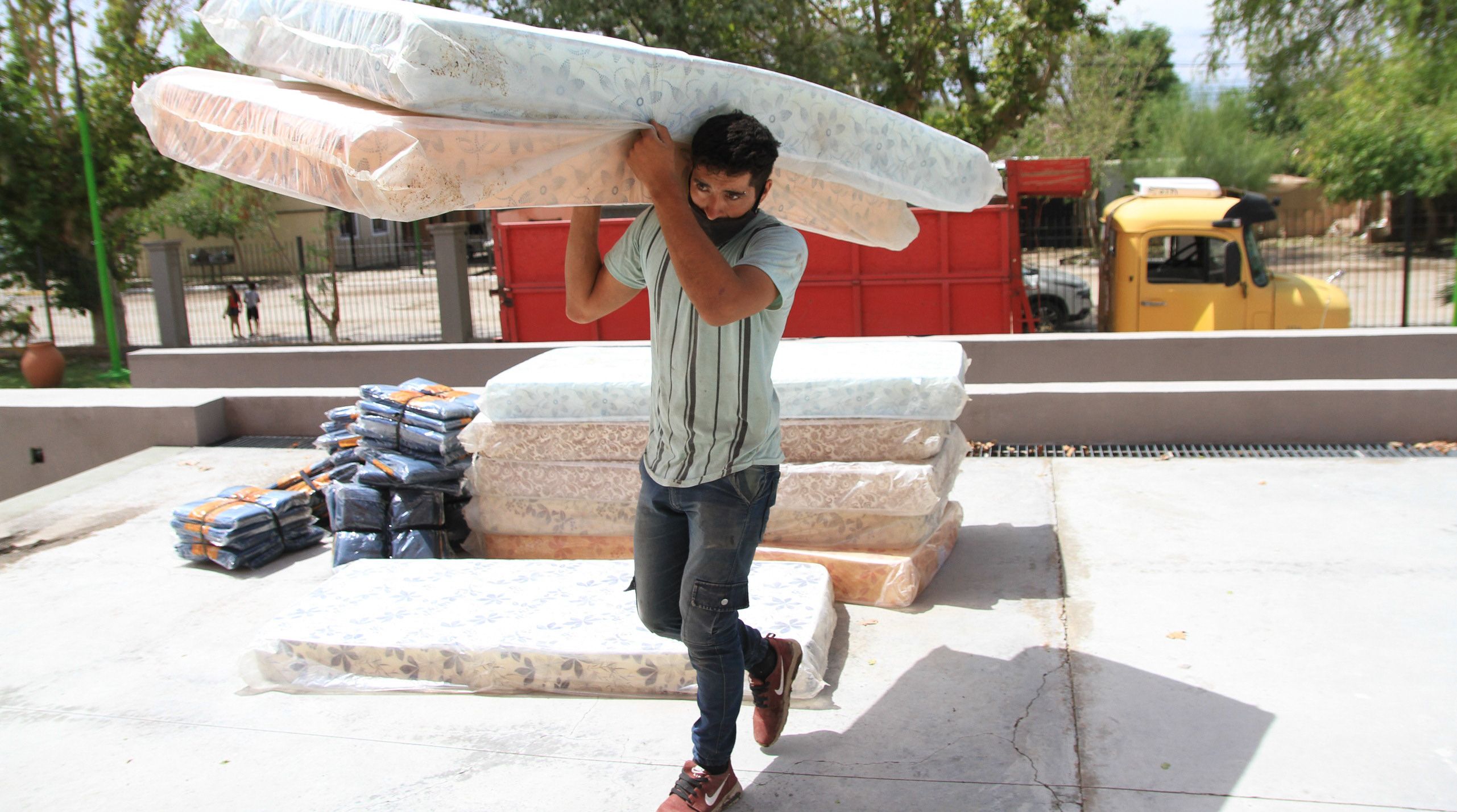 Camiones con gente bajando colchones, niños corriendo y muchas caras de preocupación. A grandes rasgos, es el clima que pudo percibirse ayer en el estadio Marcelo García, uno de los tres centros de evacuación que dispusieron en Pocito para concentrar a las cerca de 100 familias afectadas por las lluvias que, compuestas casi todas por entre cuatro y seis miembros con mayoría de niños, la cifra se acercó a las 500 personas damnificadas, según datos oficiales.