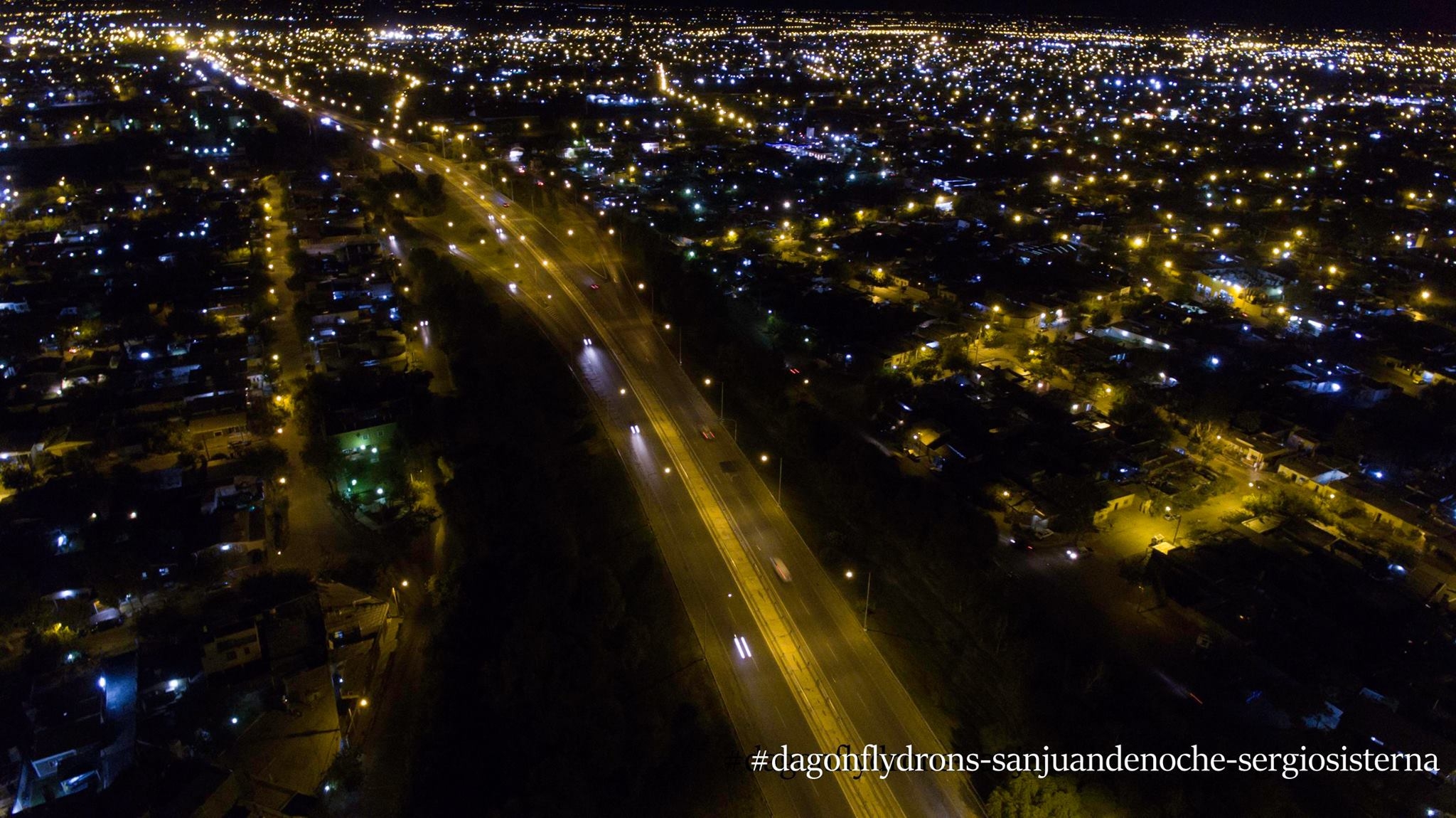 Los dos elementos de la geografía urbana de la capital sanjuanina que se ven claramente en la fotos son el Conector Sur y la Avenida de Circunvalación.