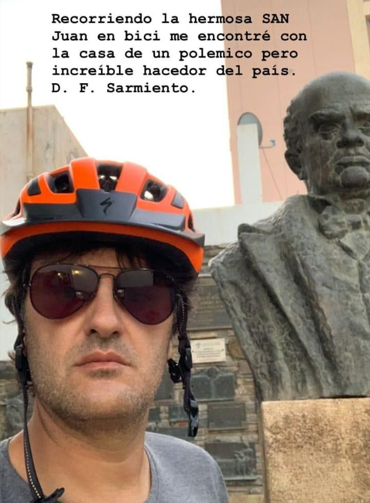 El artista que hoy se presenta en el escenario central de la Fiesta Nacional de Sol salió a pasear en bicicleta, con casco incluído, y realizó su primer parada en la Casa de Sarmiento. "Recorriendo la hermosa San Juan en bici me encontré con la casa de un polémico pero increíble hacedor del país. D.F. Sarmiento", escribió.